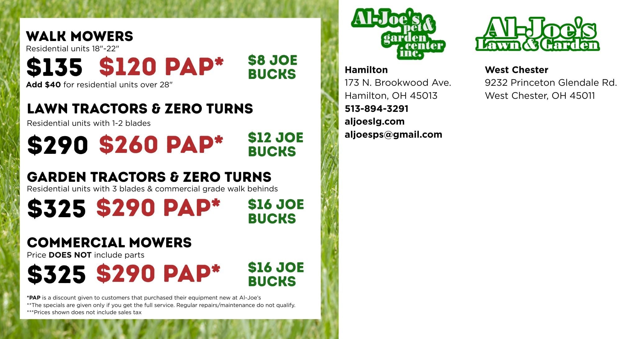 OUR SERVICE SPECIALS FOR 2026!